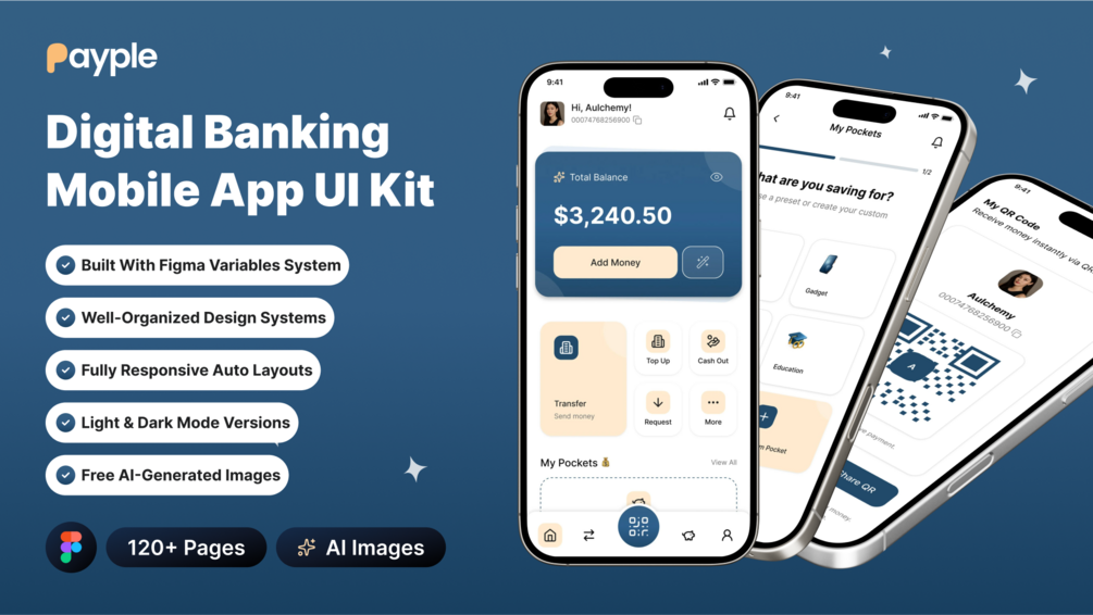 Payple – Digital Banking Mobile App UI Kit is a modern fintech design system made for creators who want to design clean, scalable, and real-world banking apps fast.